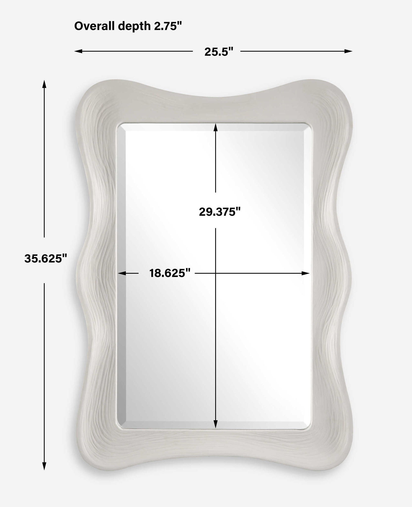 This Mirror Showcases A Contemporary Coastal Design With A Wavy Organic Shaped Frame Finished In Matte White With Noticeable Waves And Texture. Mirror Has A 1" Bevel. May Be Hung Horizontal Or Vertical.